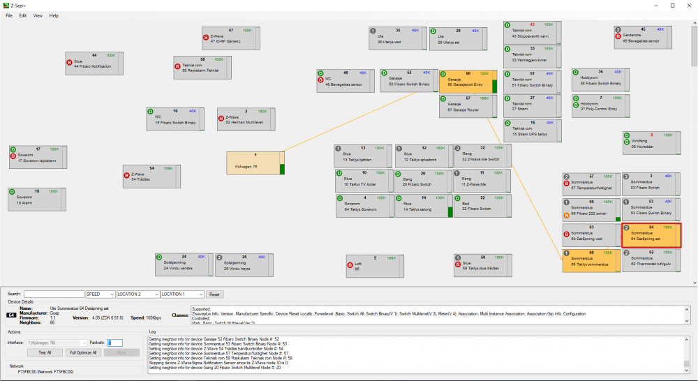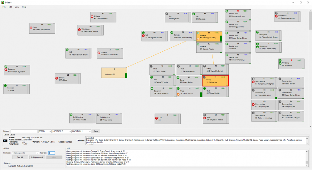Å optimalisere kun på 100k enheter hjelper ikke, da de allikevel kobler opp mot hverandre på 9.6k. Jeg vet ikke om det bare er jeg som har dette problemet, men det er for meg ganske vanlig. Jeg har forsøkt utallige ganger både med og uten optimalisering, optimalisert kun 1-2 eller 3 noder som er sentrale på hver in kant av huset og full optimalisering av alle. Uansett kobler nodene seg via andre med kun 9.6k forbindelse. Hvorfor vet jeg ikke, da det kan være en Fibaro Dimmer 2 som kan gå via 2 andre Fibaro Dimmer 2 (alle fw 3.5). Eller en Z-wave.me enhet som går via en Aeotec hvor begge er 100k, men kobles bare opp med 9.6k.