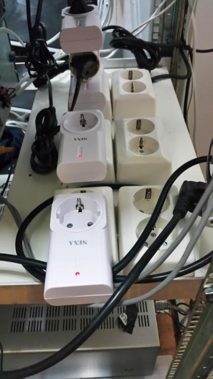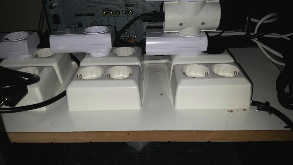 Har noen sett en padde med litt avstand mellom kontaktene?Mastiff publiserte et emne i Automasjonskaféen Jeg holder på med server/lydskapet (standard 60 cm dyp 19" rack) , og det er en del Nexa-brytere som skal sitte inni der. Men problemet med både strømskinner for rack og vanlige padder/grenkontakter er at de ikke har nok avstand mellom kontaktene til at man kan sette flere sånne på rad. Ellers ville jo denne fra Clas vært perfekt: Men også der er det for liten avstand mellom kontaktene. Kjenner noen til noe lignende med litt mer avstand mellom kontaktene? Jeg vil tro det holder med en centimeter, sånn omtrent. En Deltaco-strømskinne har samme problem: En annen sak er at den koster nesten like mye som fire av Clas-padda, med 1,5 ganger så mange kontakter!