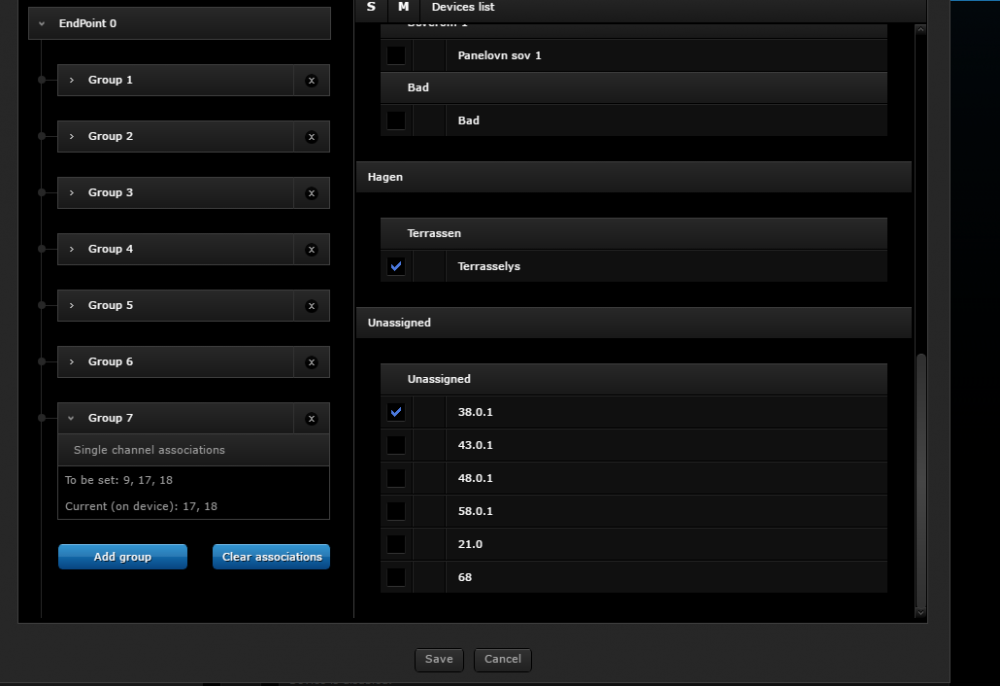 13. Har en Fibaro Switch 2x1,5kW (https://www.netonnet.no/art/hjem-og-fritid/smartehjem/fibaro/fibaro-relayswitch2x1a5kw/214899.11675/?gclid=Cj0KEQjwt6fHBRDtm9O8xPPHq4gBEiQAdxotvC_u07ekfyWvdJMGhqF3ftMSeRHkDt-OWYFR5YTsX3YaApxs8P8HAQ). S1 er en pære over spisestua, mens S2 styrer et utelys på terrassen. Hver for seg fungerer enhetene på web og i app. Problemet oppstår når jeg skal assosiere S1 mot en Nodon-bryter. Når jeg forsøker å assosiere devicen til en gruppe, må jeg velge både S1 og S2 (når jeg markerer én, markeres begge). Hva gjør jeg galt?