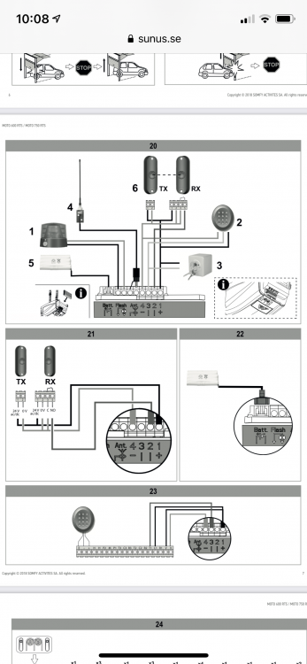 1. Hel alle. Har fått installert garasjeportåpner Somfy Moto 600 og har anskaffet en fibaro smart implant for å automatisere. Det jeg lurer på er den fysiske koblingen da dokumentasjon på åpneren er minimal. Åpneren har kun to trådløse åpnere samt en snor som går rett inn i åpneren for manuell start/stopp fra innsiden. Har lett mye på nettet mhp automasjon via trådløst system men pga rullerende kryptering er dette vanskelig. Derfor smart implant. Siden det ikke er noen kablet knapp så får jeg ikke noen av koblingsskjemaene som allerede er postet på forumet til å gi noen mening (feks post fra Moskus). Som jeg kan se er det kun antenne som er koblet til. Legger ved koblingsskjema fra manualen. Hele manualen er her: https://sunus.se/wp-content/uploads/2020/05/Moto-600-750-Svenska.pdf Er det noen som kan hjelpe meg?