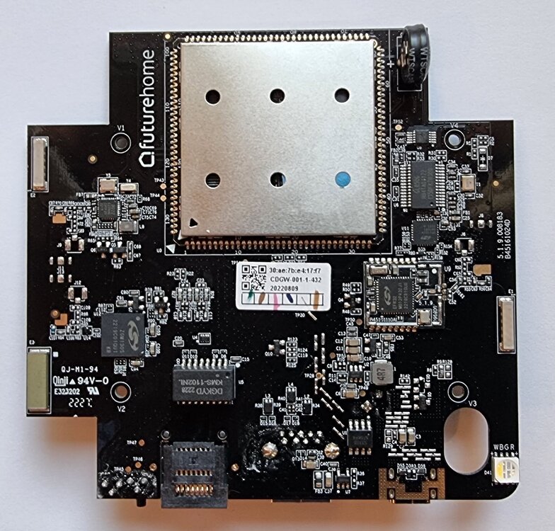 Jeg ønsker meg ssh-tilgang og har tatt mot til meg for å åpne min FH Hub 2. Slik jeg ser det, er det ikke mye å hente. USB-C ser ut til å bare forsyne enheten med strøm. Koblet til PC, er det ingen tty som aktiviseres. Det er heller ingen JTAG synlig på kortet. Derimot er det tydeligvis en UART eller to der. Det mest lovende stedet er de 4 rektangulære loddepunktene på bilde FH-4. Der kan det være en mulighet for en vei inn, men med mine 80 år og skjelven på hånde, er nok ikke jeg den rette til å prøve meg med loddebolten. Når jeg først er inne på det, så kunne det være kjekt å fikse ethernet til å beholde MAC-adressen etter en reboot. Å gå inn på ruteren i etterkant og sette ipaddresse etterpå er i beste fall plagsomt. For de som fortsatte ønsker å bruke enheten uten app, så leverer den meningsfylte MQTT-meldinginger.All automatisering må i så fall gjøres utenfor enheten (Home assistant eller lignende). Etter at Futurehome kutter tråden, er det ikke lenger mulig å laste ned apper til huben (tror jeg). Et tips til de som vil beholde huben uten å bruke app. Aktiviser Thingsplex og download alt du kan tenkes å ha bruk for av integrasjoner. Da vil du få alt av MQTT-meldinger. De kan være litt forvirrende, men det går an å finne ut av.