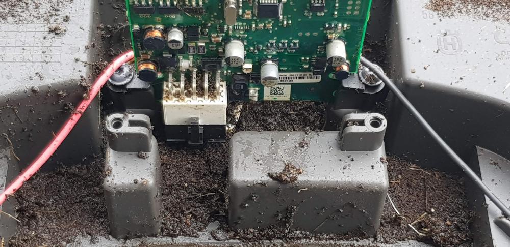 Hvordan den våte mulden har kommet inn i ladestasjonen aner jeg ikke (Kanskje maur/edderkopper?)