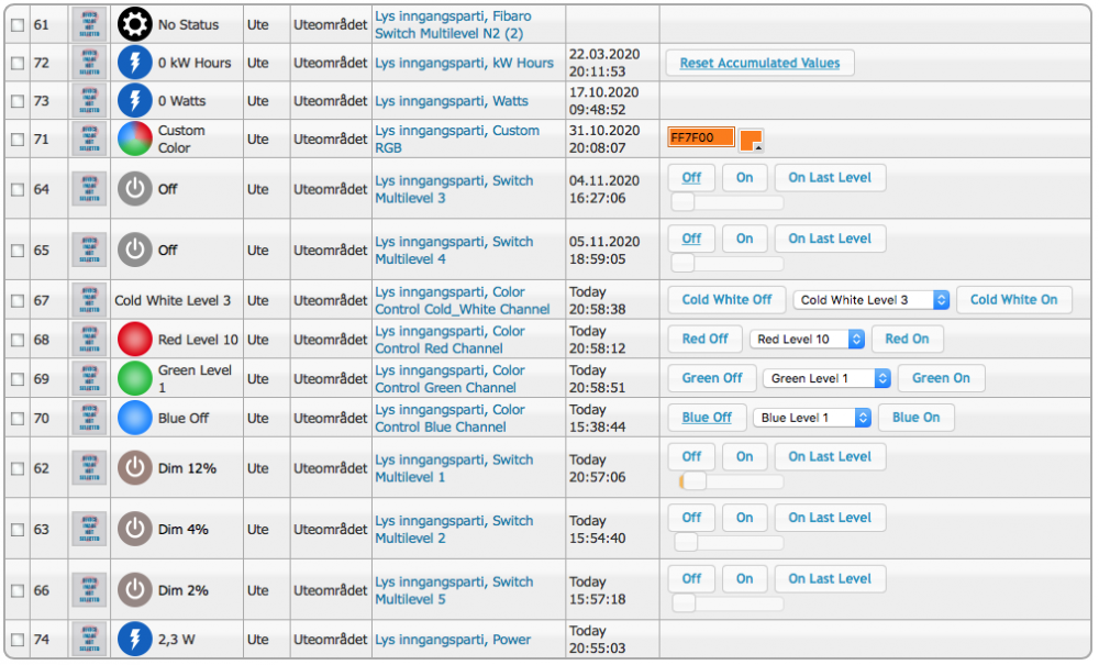 Jeg har samme problem! Og forstod ikke svare ditt Moskus Jeg har lagt til en status som har value 0 og status OFF. Jeg prøver da og lage et event som skal endre status tilbake til off 3 sekunder etter at jeg har satt en scene, men da er ikke denne devicen tilgjengelig for styring Hvorfor det? se bildet.