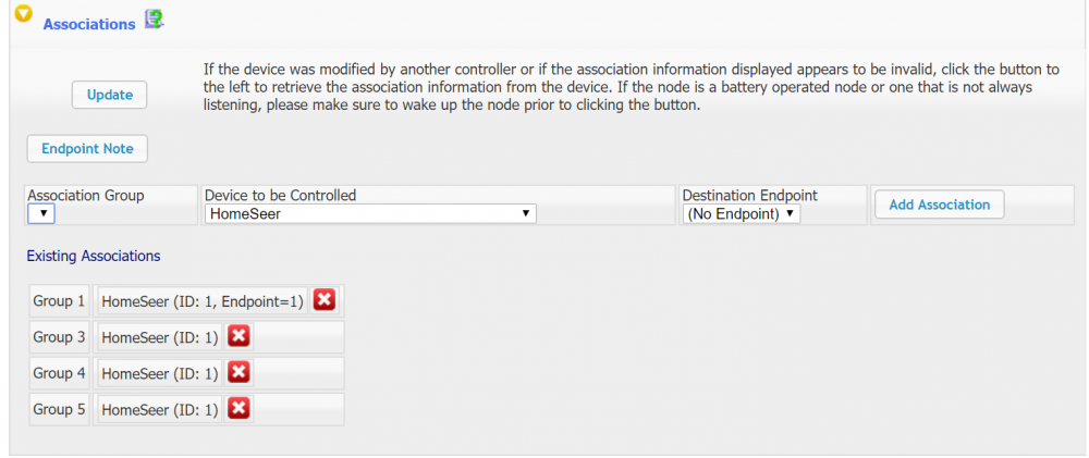 4. Har lagt til en fibaro single switch 2 med firmware 3.3 som jeg tror er siste versjon. Lurer da litt på associations og endpoints. Slik ser det ut etter jeg har lagt til bryteren, har ikke gjort noe med associations eller endpoint. Ser dette riktig ut? Har også noen fibaro double switche 2 liggende, skal asociations og endpoints være lik som på fibaro single switch? Jeg skjønner litt av associations, men dette med endpoint er jeg helt blank Leste på homeseerskolen at endpoint ble fjernet på en fibaro dimmer. En annen post skulle de være der på en Heatit varmekabelbryter