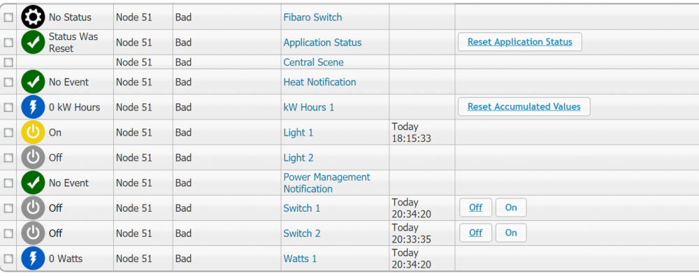 1. Det ser ut til å virke til meg også, bare en ting jeg stusser på. I bildet av mine devicer i posten ovenfor lyser "light 1" gul hele tiden. Er det riktig? Det er "switch" som blir gul når lys er på, og grå når lys er av. og det virker både fra styring via Homeseer og manuelt på bryteren. Jeg har parameter 20 satt til "0" momentary switch da jeg har impulsfjær i bryteren. Skulle tro det var "light" som vekslet mellom gul og grå, samt switch bare når impullsbryteren er inne. Jeg har bare Group 1 HS Endpoint slik som deg. I samme slenngen lurer jeg litt på noe om Heatit Z-Dim også. Hvis dimmeren er avslått, og jeg tar sikringen så det blir strømløst. Når jeg slår på strømmen igjen så slår dimmeren på seg selv automatisk. På fibaro switch er det ikke slik, de har også et parameter for å bytte. Jeg finner ikke noe liknende for Z-DIM bortsett fra det her under. Men dette parameteret blir ikke til hjelp slik jeg forstår. vil jo ha samme verdi som før power loss, dvs av mangler.