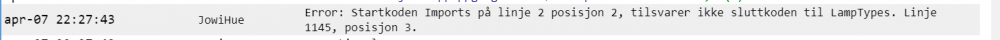 6. Får denne opp på logen. Utsyr jeg har på JowiHue er ikea wall plugs og 2 stk Xiaomi sensorer. Har En Philips hue pære på device listen, men den er ikke i bruk. Hva kan det være? Tror ikke den var der tidligere, men kommet uten at noe er gjort i zigbee netverket.