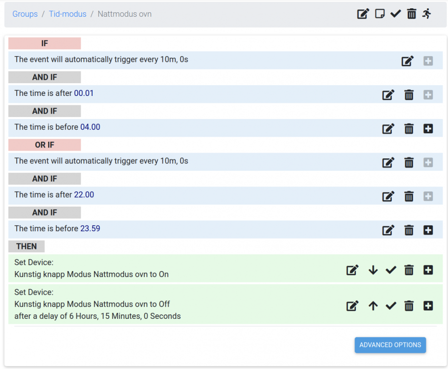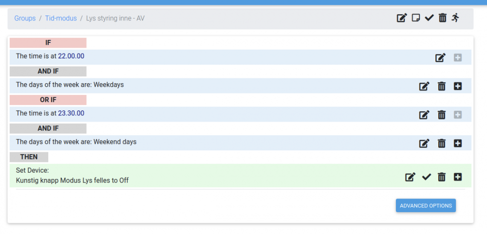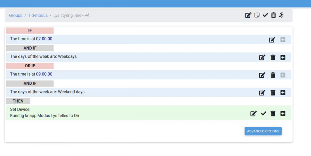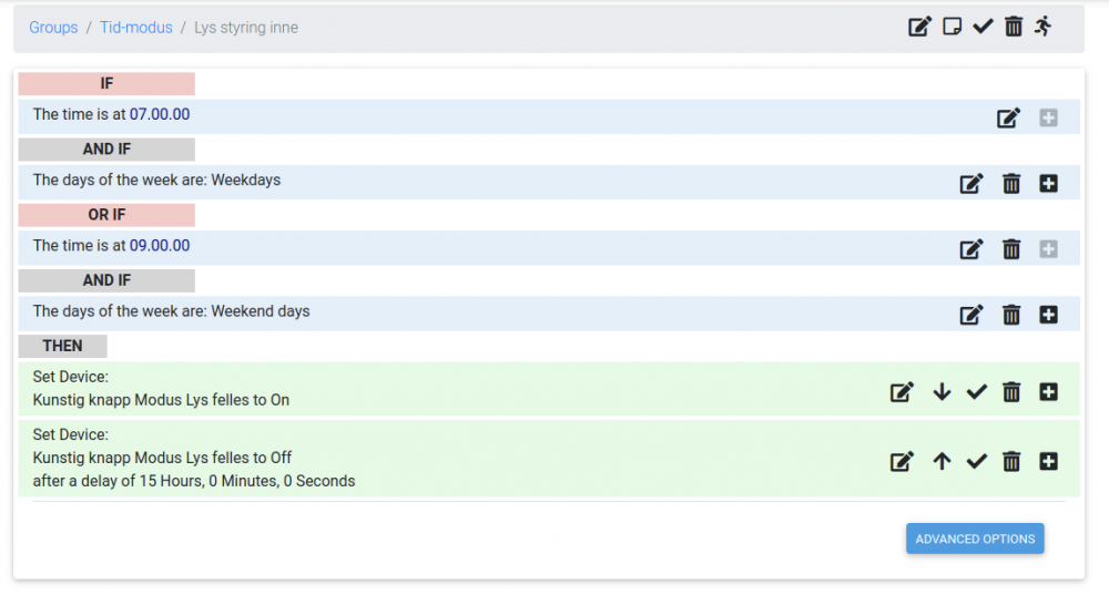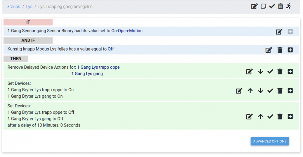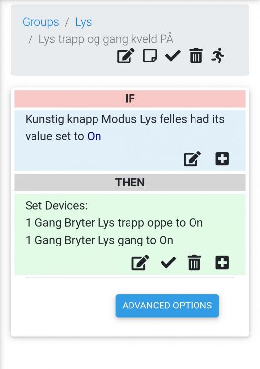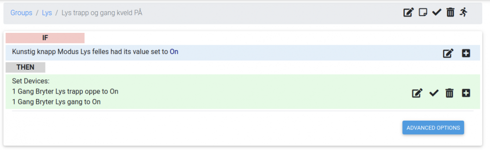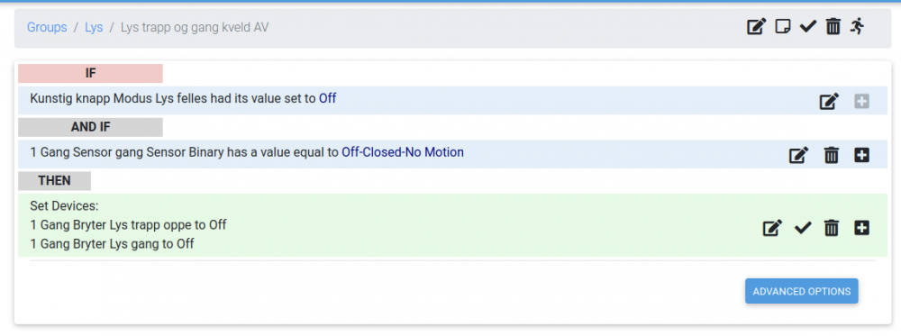 Hadde lyst å få til en felles lys knapp for vaskerom og gang/trapp og evt andre steder, for å slippe mange kompliserte regler for hvert rom.