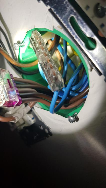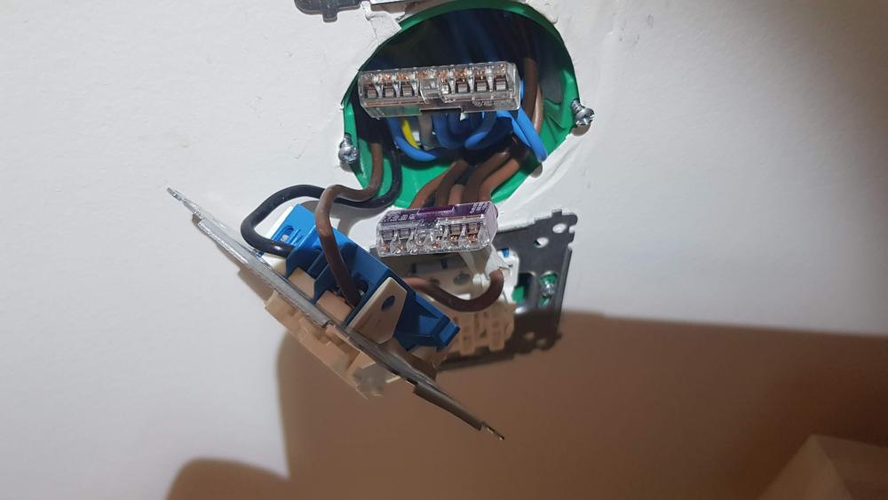 12. ikke vet jeg, er ikke mye plass - se bilder, jordledningen ligger helt inne i boksen. og ja, to forskjellige brytere på hvert sitt lys.