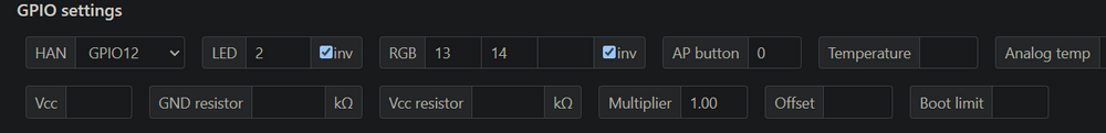 Hadde en gammel rPi1 som jeg brukte, så nå har jeg lagt inn aller nyeste (2.1.6), og konfigurert den på nytt. Så nå funker alt, bortsett fra data fra HAN. Jeg får ikke valgt måler i configen, den står til unknown, og ingen data kommer. Har Kamstrup, og den har jo fungert før. Pow-K v.1.1. Det er vel GPIO12 den mottar på? Eller var det sånn at jeg måtte vente på en heltime avlesning tro...? -