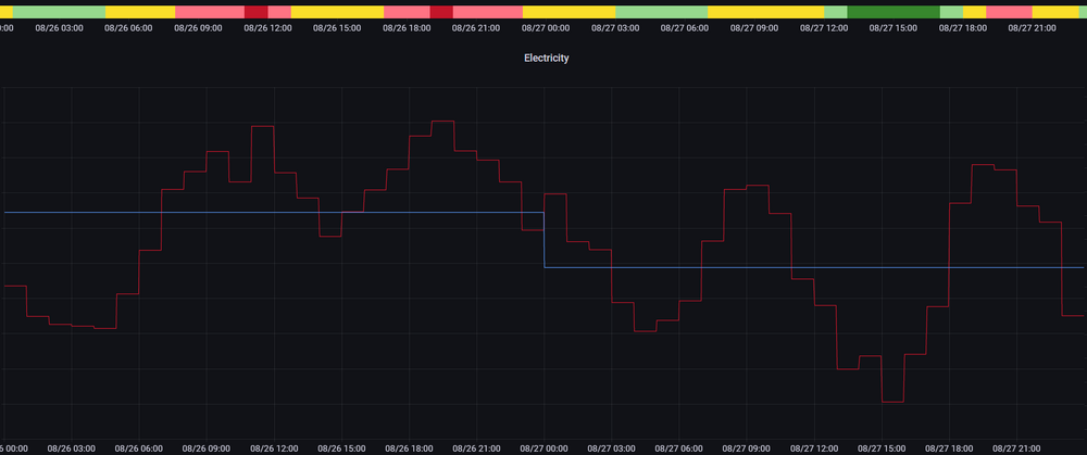 Tja, jeg bruker ikke Homey, men jeg kalkulerer egne prisnivåer, 5 nivåer. Disse igjen viser jeg som tekst på mitt dashboard, men har også en RGB lyspære i en liten bordlampe på kjøkkenet som endrer seg etter prisnivå gjennom dagen. Uansett, jeg kalkurerer gjennomsnitt av strømprisen (blå strek), og så kalkulerer jeg standardavvik. Så har jeg definert nivående slik: LAVLAV (mørk grønn): Strømpris < 1,5 * standardavvik. LAV (lys grønn): Strømpris < 0,75 * standardavvik. HØY (lys rød): Strømpris > 0,75 * standardavvik. HØYHØY (mørk rød): Strømpris > 1,5 * standardavvik. MEDIUM (gul) er alt annet, som blir mellom lav og høy. Prisen jeg går utifra er inkludert alle avgifter og også differensiert nettleie (dag og natt). Tallet 0,75 og 1,5 måtte jeg prøve meg litt frem for å finne med tanke på hva jeg ville skulle skje på de forskjellige nivåene... F.eks er VVB bare på her ved LAV eller LAVLAV nivå. Varmekabler i betonggulv er av ved HØY og HØYHØY. Jeg kalkulerer også nivåene på nytt med en gang nye strømpriser er tilgjengelige, og tar da med begge døgnene (i dag og i morgen). Dashboard: