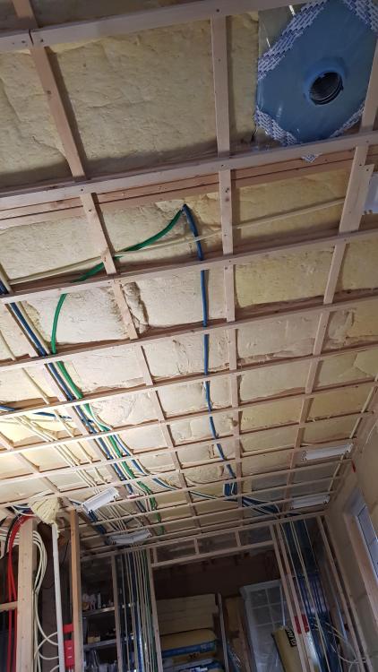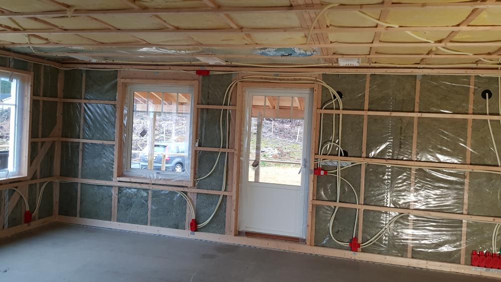 Det går sakte men sikkert framover. Har fått lagt opp trekke rør i 1 etg. +loft, inkl. Ca 250m ferdigtrekt 2xcat6 tv/data til alle rom, samt. ute på terasse på øst og vestsiden. Har i tillegg trekt opp 2xcat6 til div. plasser for evt. kontrollskjermer eller lign. Alle stikk har ekstra sløyfe 20mm rør til tekn.rom eller bryter, alle brytere har ekstra 20mm til tekn.rom. Lagt opp punkt til sensorer og røykvarslere i alle rom med rør ned til tekn.rom. Har også lagt 20mm rør fra alle vindu og dører som kan åpnes.