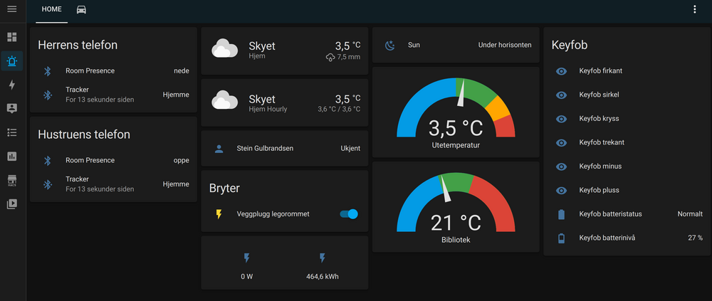 23. Har såvidt forøkt Room Assistant. Forstår ikke helt meldingene. Det rapporteres an distanse som sakte endrer seg efter at telefonen har entret rommet eller forsvinner, men er ikke særlig riktig. Lurer på om man er nødt til å flere enn én for å få noe ut av det. Dessuten sliter jeg litt med at PIen henger efter kort stund (vet ikke om det har noe med RA å gjøre). Må nok prøve litt mer.