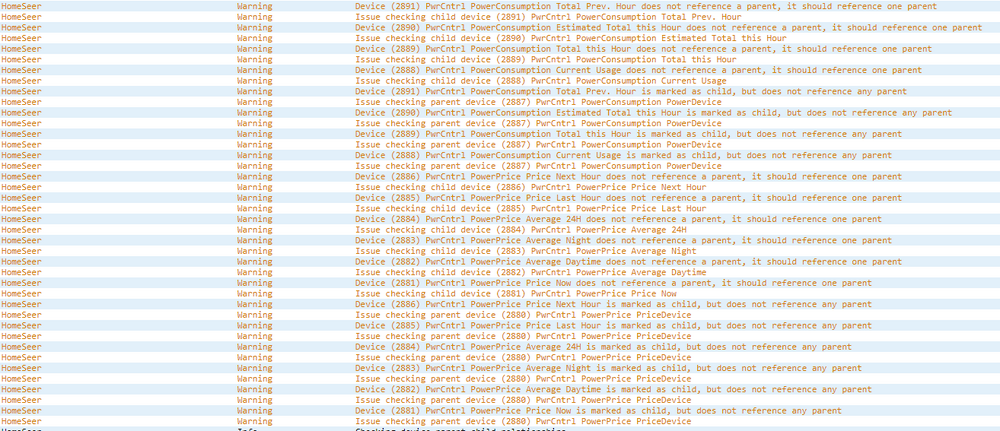 Da kaster eg inn håndkledet... Testet følgende: Slettet plugin og alle filer. La inn plugin på nytt, og brukte den siste versjonen som lagt ut over i tråden. Endret ini filen til dette: [General] TestRun=False TestDateStr=05-12-2022 ;02-11-2022 RunOnce=False DebugWriteToFile=True Devices=Test1_Min_ON,Test2_Min_ON,Test3_Min_ON DefEURrate=9,99 Currency=NOK FilePath=C:\DATA\Prisstyring Data\ WriteToFile=True PriceFetchTime=15 PriceFetchAttempts=5 CheckShoulderHeight=False SecurityToken= PriceArea=NO1 PriceDevice=PriceDevice TimerIntervalSec=60 PriceCheckInterval=10 MaxArraySize=50 [Power] PowerReader= AMS_URL=http://192.168.xx.xx LogDailyPower=True LogHourlyPowerInterval=300 LogCurrentPowerInterval=60 PowerLimitSummer=5000 PowerLimitWinter=10000 PowerDevice=PowerDevice [Test1_Min_ON] Mandatory=True StretchMin=3 CheckShoulderHeight=False DeviceMaxType=False UsePowerSupportLimit=False AbsoluteLimit=False TimespanEnd=4 Floor=PwrCntrl Room=Tullball1 Use24average=False MinLength=3 Merge=False [Test2_Min_ON] Mandatory=True StretchMin=3 CheckShoulderHeight=False DeviceMaxType=False UsePowerSupportLimit=False AbsoluteLimit=False TimespanEnd=4 Floor=PwrCntrl Room=Tullball2 Use24average=False MinLength=3 Merge=False [Test3_Min_ON] Mandatory=True StretchMin=3 CheckShoulderHeight=False DeviceMaxType=False UsePowerSupportLimit=False AbsoluteLimit=False TimespanEnd=4 Floor=PwrCntrl Room=Tullball3 Use24average=False MinLength=3 Merge=False Stoppet/startet HS4 igjen, måtte ta omstart for at plugin skulle vise seg under plugins. Sjekker under devices, og det er berre Test1 og Test 2 som vises her. Tullball3 vises ikkje, men den er da helt lik som dei to andre. Kjører HS4 som service, kanskje problemet ligger her?