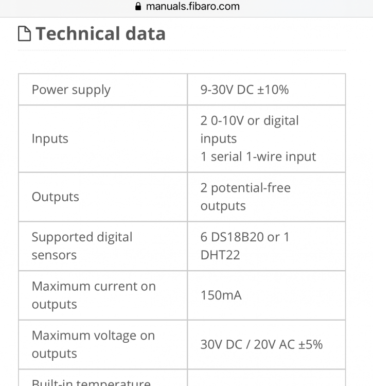 5. Var ute og målte. Det er 0 V mellom de to klemmene oppe til høyre merket 3. så jeg tror etiketten +-24V er villedende og gjelder en komponent som ikke er der på min modell. Gitt de målingene jeg har gjort ellers, er det noe annet punkt jeg kunne ha brukt for å få strøm til Fibaroen? Hva blir galt med mitt forslag til kobling ref den første håndskrevne skissen min? Selv om jeg får til å drive Fibaroen f eks med et 9V batteri, vil ikke 33V spenningen på input eller output være for mye for Fibaroen? Se specs her: