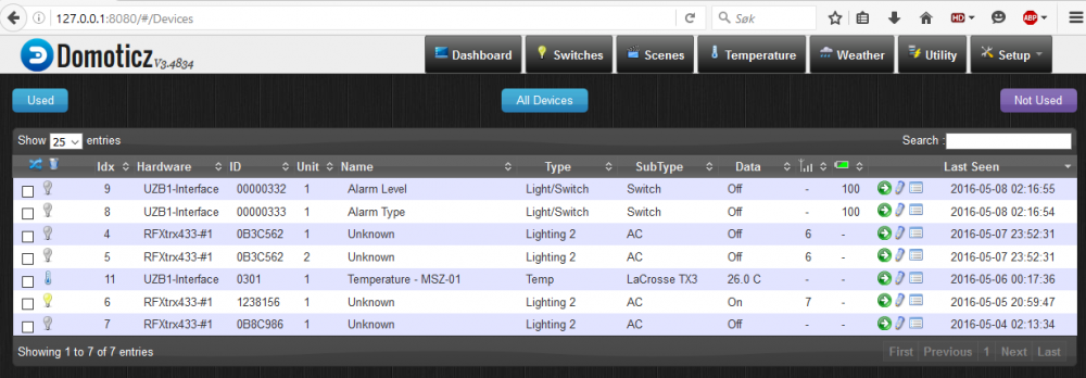 Så bra!! Mmen jeg trenger det med teskje. Den kommer ikke opp på Device-listen min, og jeg vet ikke hvordan jeg legger til noe annet enn Brytere manuelt. Det er ellers flere enheter på denne listen jeg ikke vet hva er... Så hvordan legger jeg til enheter med LEARN knapp, eller annet parringsmodus. Ellers så har jeg lagt den nye temp sensoren på samme plass som en Aeotec Multisensor ZW100. Men de viser forskjellig temperatur, og fuktighet. Regner med dette er vanlig?? Men 3,5 grader forskjell er ikke det en del feil? Synes begge er viser for høy temperatur egentlig. Går det ann å kalibrere? Og på fuktighet er det 11% forskjell. Tanker om dette?