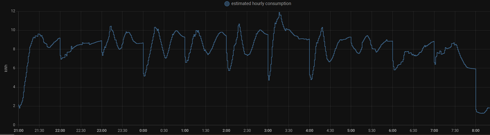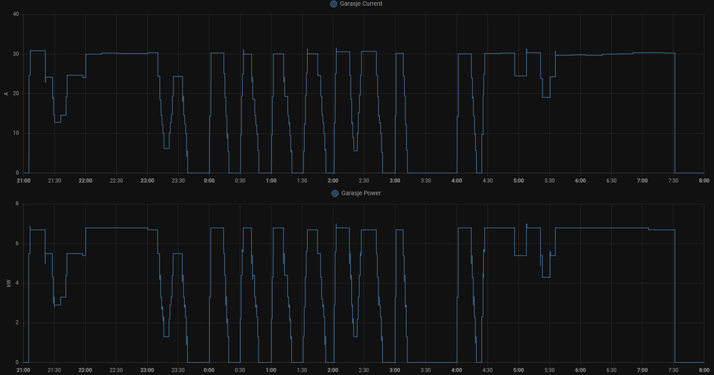 Estimering av forbruk og lading av elbil (pyscript)jkaberg svarte på jkaberg sitt emne i Automasjoner Takk for at du påpekt utfordringen med flash minnet, har ikke kommet over den advarslen tidligere og kommer til at korrigere koden. Ellers føler jeg at diskusjonen er på vei i feil rettning. I grunn har ikke dette noe med hvilken bil eller ombord laderen sine egenskaper og gjøre, fordi forbruks måling og styring skjer utenfor bilen og "bilen tar det den får". Som jeg (kanskje litt klønete) prøver og diskutere/drøfte/spørre om i OP er at prediksjonen er vel "hysterisk" som den er nå (ved at det er mange topper og daler i grafen). Dette fører blant annet til at billaderen justerer styrken ofte opp/ned for og holde seg innenfor tarif nivået. Dette har jeg nå prøvd og fikse med og kjøre prediksjonen mer sjelden (foreløpig hver 5 minutt, fra 1 minutt tidligere).