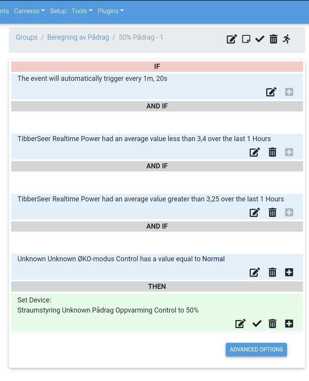 Hei igjen. 🙂 Effekttariffen har komt for å bli. I mitt tilfelle, er det den eine timen i mnd med høgast forbruk. Det gjenstår å få sammenligne kontinuerlig snittforbruk sist time med device i pluginet Device History (Håper på at utvikler vil hjelpe..) For å forsøke spare mest mulig på effektleddet, vil eg forsøke på nytt den 1. kvar måned, istaden for å benytte fast verdi. Dette fordi strømforbruket endrar seg med årstid og utetemperatur, etc. Eg har oppretta 2stk device for å lagre forbruk sist time og max forbruk hittil denne mnd. Så sammenliknar eg device:forbruk sist time, med device: max forbruk hittil denne mnd. Er forbruket sist time høgare enn max denne mnd, blir verdien fra sist time skrevet over til device: max forbruk hittil denne mnd. Device: max forbruk hittil denne mnd blir satt til 1 kWh kvar 1. i mnd klokka 00.00. Dvs det blir litt sparsomt med oppvarming den 1. I mnd, men ettersom forbruket påvirker Device: Max forbruk hittil denne mnd, vil det bli tillatt oppvarming etter behov. Mvh