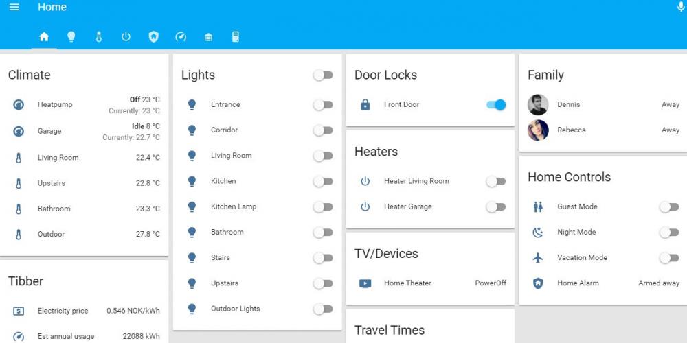 Er nok mye preferanser her på hva man liker og hvordan det brukes og ikke noe som nødvendigvis er "best". Er bare å se rundt hvordan andre har løst det og sette sammen med litt modifiseringer etter egne ønsker. Mitt system ser slik ut: Men har begynt å flytte over til Lovelace UI så blir nok noen endringer snart.