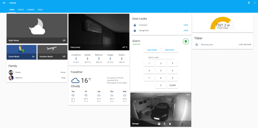 Blir bare mer og mer glad i Lovelace, når det kommer til muligheter for å overvåke ting bedre og gjøre det mer brukervennlig på eks tablet på vegg Fått satt opp litt mer fancy oppsett nå på alarm panel, varmepumpe, batteri på bilen og forbruk av strøm i huset. Veldig enkelt å sette opp.