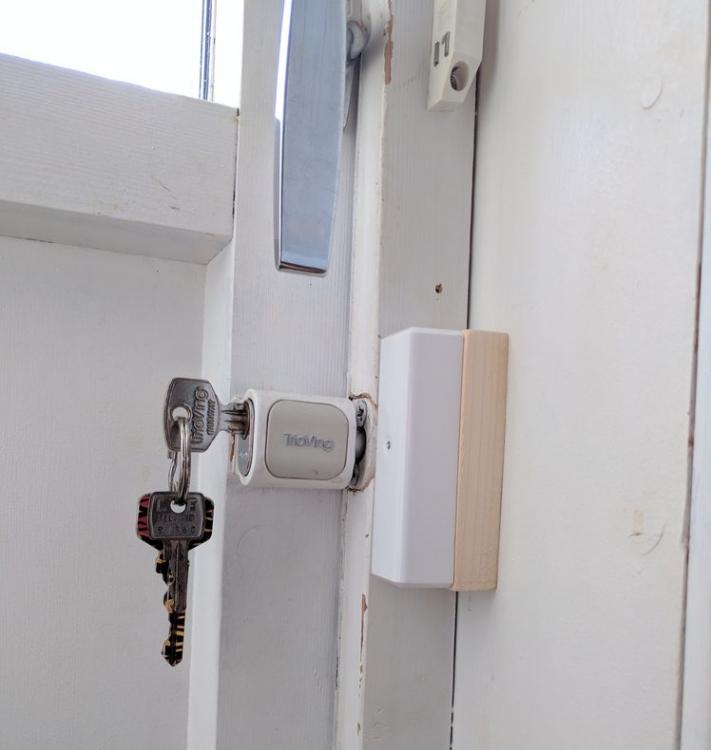 Fått terrasselåsen inn i Homeseer. Ofte litt usikker på om vi husket å låse, eller om vi bare lukket døra uten å låse. Sett mange varianter av denne tidligere, men første gang jeg har gjort det selv. Var en del fikling for å få nøyaktig avstand, da toleransen var på under 1mm. Magnet på låsebolten, som leses av mottaker festet på karmen.