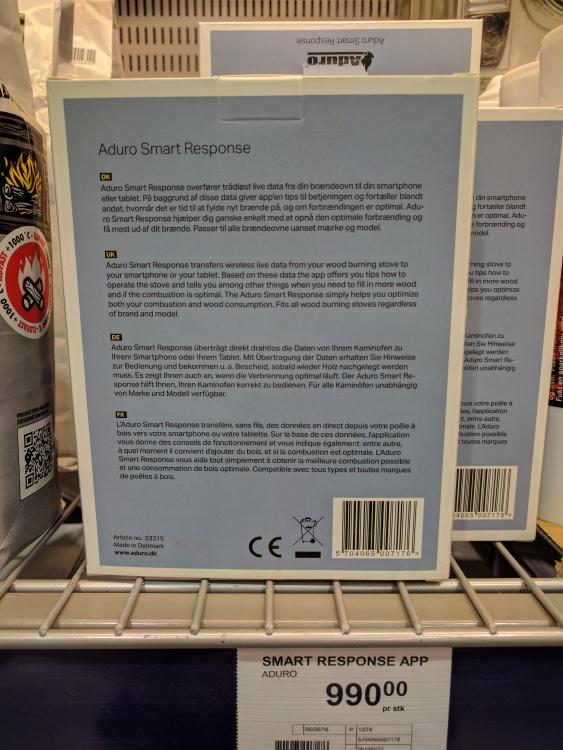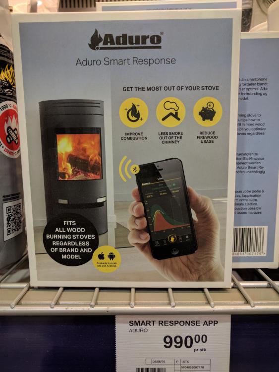 Var innom Coop Obs bygg på Alnabru i Oslo og kom over denne. Endte opp med ikke å kjøpe, men nok en ting man kan gjøre "smart". Dette er en bluetooth dings, så det blir litt omveier for å få dette inn i noe smart system. http://www.aduro.no/aduro-peisovner/aduro-smart-response/