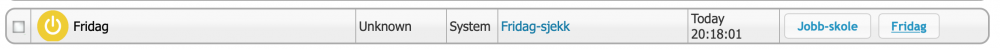 Takk Viser at det er jobb i morgen.. Men, jeg ble ikke så veldig mye klokere.. jeg har jo ikke en device nr. 219...? Ser for meg å vise status på skjermene i huset, fra den virtuelle enheten. Og da er det jo "i morgen" som er mest aktuell, så en har mulighet til å manuelt slå over på fridag, f.eks ved sykdom, restferie osv.. Hva viser min virtuelle device nå? Er det dagens status eller status i morgen?
