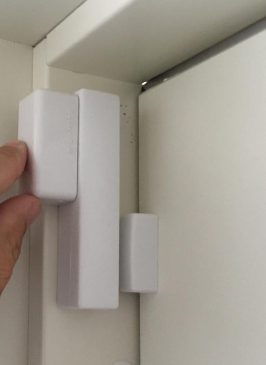 Nye magnetsensor i hus for test Enda billigere denne gangen. Model HS1DS-Z http://r.ebay.com/6DLUqg 9 Pund, og 3,75 i frakt (+2 pr ekstra sensor.) Ser også ut til å fungere helt utmerket. z-wave (plus?). Kjapt og enkelt å legge inn. (3 trykk på sabotasje-bryter, til grønn diode blinker) Kun dobbelsidig tape, ingen medfølgende skruer. Hovedenheten kan man skru gjennom bakplate, men selve magneten er "solid". Det positive med denne er at magneten fungerer på begge langsider, og foran. Startet så vidt å se litt på HS, slik ser den ut der: Lukket: Åpen: Nederste icon "On-Open-Motion" forblir rød hvis tamper er utløst, og den vil da ikke rapportere lukket før lokket er på igjen. Selve Tampering Cover er rød hele tiden. Men ikke forsket noe på det, da det ikke er aktuelt å ha tamper i vårt oppsett.