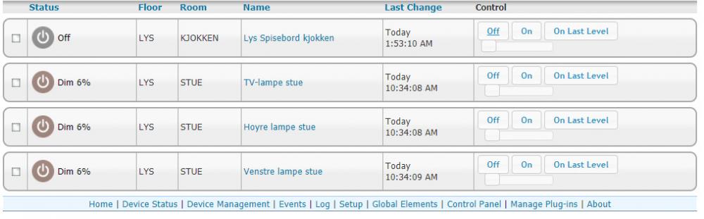 (I bilde vedlagt er strømmen til "Venstre Lampe Stue" skrudd av og Devicen er Pollet)