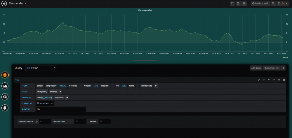 Du må skrive inn adressen til Influx databasen på URL. Kjører alt på samme maskin, så er det jo bare å skrive det som står der: http://localhost:8086 Evt. endre om du har satt en annen port