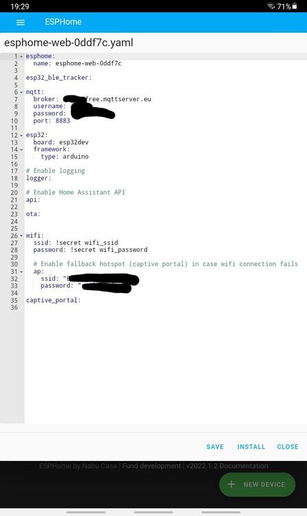 2. Målet er å frigjere esp32 frå HA, bruke esp32 til å lese av verdi frå xiaomi bluetooth sensor og sende det til HA via Mqtt. Pga sensor og esp32 skal stå på annen lokasjon enn HA.. Veit eg må fjerne HA api koda. Korleis kan eg då kode yaml på ein praktisk måte?