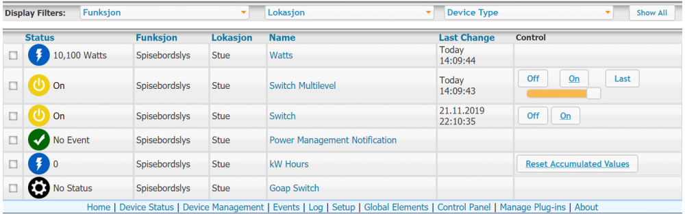 Ja vil tippe det er noe sånt. Er det noe sted å lese av hvilken status som blir sendt tll HomeSeer? Det vil si råformatet før HS konverterer til status basert på predefinerte statuser?