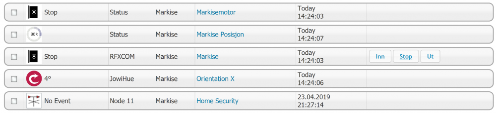 15. Prøvde å lage en event på dette nå. Er ett problem at jeg ikke får en timer til å telle bakover. dvs hvis jeg kjører markisen ut 60% og så inn 40%, hvordan får jeg da timeren til å bli 20%? Kan selvsagt løse dette med å bruke en counter i stedet. Men blir kanskje en "tung" event..
