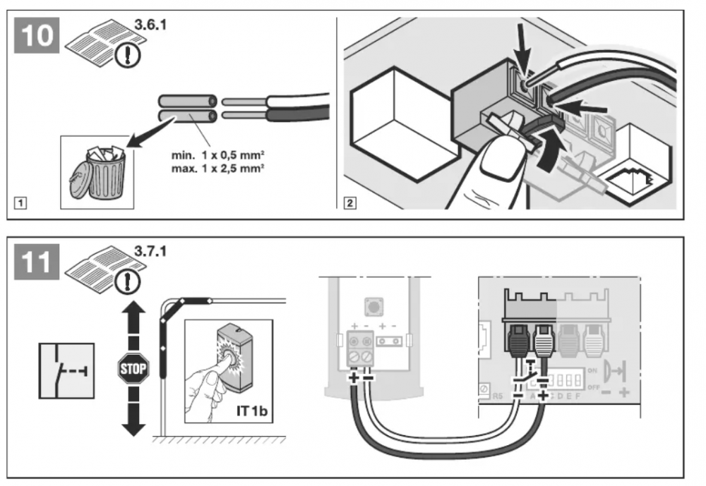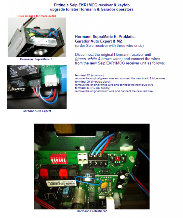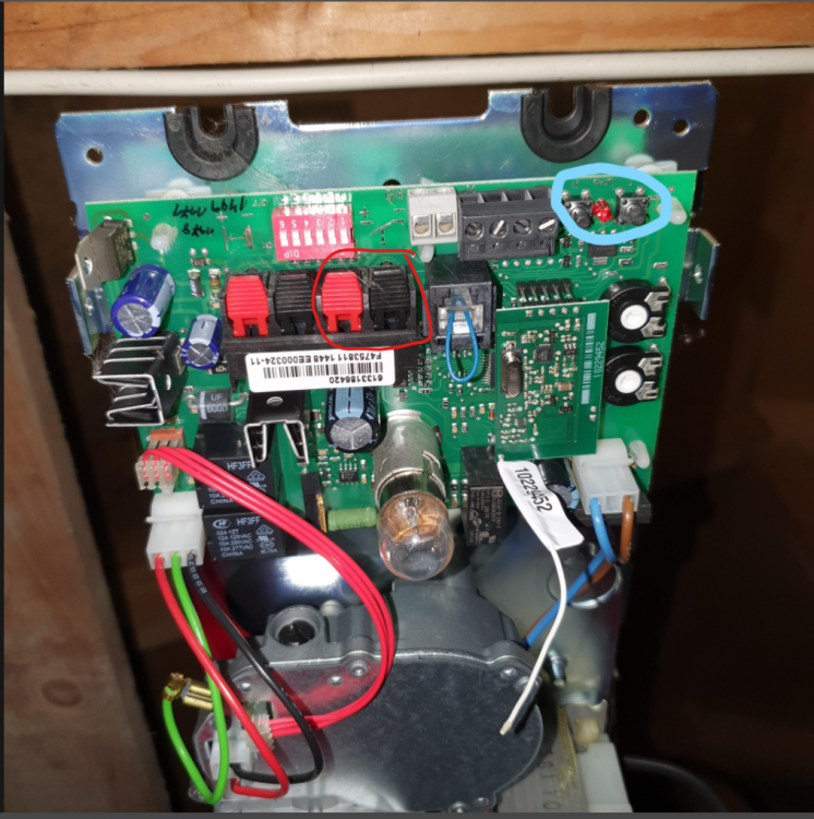 Ang. 0-24V klemmene så må jeg innrømme at jeg "tok en spansk en" og så på tegningene i tråden jeg linket til, selv om det i den tråden var snakk om en ProMatic 3. Etter å ha sett nøyere på manualen til ProMatic 2 så ser det faktisk ut som om disse klemmene er brukt til styring av et eksternt rele, og ikke gir fast 24V ut. Beklager det, og bra du fulgte opp med kontrollspørsmål! Etter litt mer googling KAN det se ut som om du får hentet 24 VDC fra de sorte klemmene rett til venstre for bryterene du har markert med blå ring på bilde ditt. Om noen av disse klemmene er merket med "5" og "20" så er det sannsynligvis hhv. 24V (P) og jord (GND). Hadde dette vært hos meg så hadde jeg kontrollert dette ved å måle med et multimeter før jeg hadde koblet til noe. Jeg tar derfor ikke noe ansvar for at ting fungerer, eller om noe skulle bli ødelagt dersom du forsøker å koble til. Denne synsingen baserer jeg på følgende. Alternativt kan du skaffe en ekstern strømforsyning for å forsyne Implant'en Usikker på hvilke klemmer du tenker på her. Om du tenker på de klemmene til høyre på skissen min så tok jeg det herifra: Her vises det hvordan en kablet impulsbryter skal kobles til for å betjene portåpneren. En Fibaro Implant (satt opp på riktig måte) vil oppføre seg likt som en slik bryter (kortslutte mellom svart og rød kontakt i en kort periode når den aktiveres) og skal derfor kobles på de samme klemmene. Siden Implant'en bare en en "bryter" som kortslutter mellom svart og rød klemme så har det ingen ting å si hvilken av klemmene på Implant'en som kobles til rød klemme og hvilken som kobles til svart.