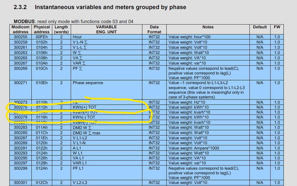 Har et anlegg med Solceller som selvsakt av og til sender noe energi ut på nettet igjen. Har der en Han sensor (heatit z-han2) integrert i smarthuset som oppgir målerstand, sanntidseffektforbruk(oppdateres hvert 10sec), system spennning(samlet for L1,L2,L3) og System Ampere(samlet for L1,L2,L3). Men jeg savner en egen "Målerstand" for salg slik som mid godkjente målere har som eksempel denne: https://www.gavazziautomation.com/en-global/product/EM24DINAV23XE1PFB?cHash=f9b3018b815410fc3e58355f602b9b9d Modbus manual: https://www.gavazziautomation.com/fileadmin/images/PIM/OTHERSTUFF/COMPRO/EM24_E1_CP.pdf Noen som vet om det finnes han sensor som leverer data /målerstand for salg også?