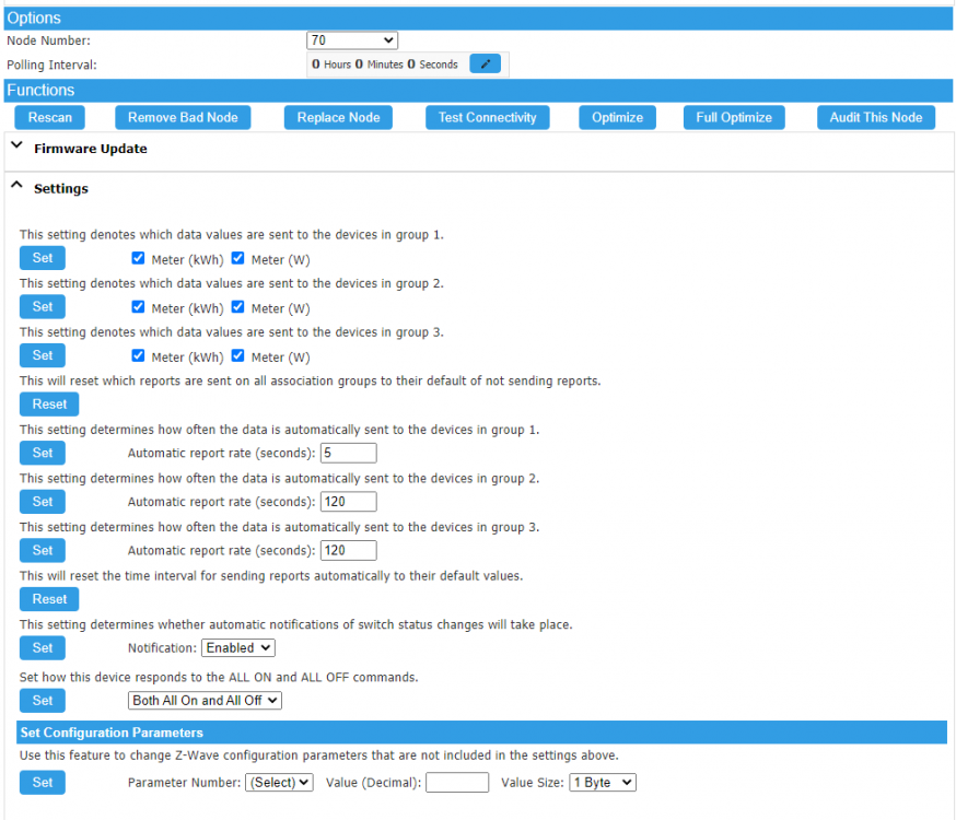 Parameter 112 [4 byte] = 60 //report kWh+V+A every 60 seconds.