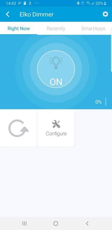 5. Hei, Har gått til anskaffelse av Elko Plus ELKO Smart Home ESH Plus 316GLED dimmer RF PH, og får dem selvfølgelig ikke til å fungere opp imot Smartthings. Appen finner Elko Dimmer og jeg får lagt den til, men den fungerer simpelthen ikke. Er det noen som har en ide hva som kan være feil. Se vedlagte bilder. Ha en fin helg. Mvh Saimax