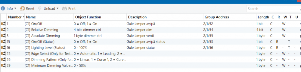 Bruker jo litt forskjellig typer dimmere her i huset, men det er ikke å stikke under en stol at det er KNX som er å foretrekke. Da mesteparten av huset er rehabilitering, var det jo noen områder hvor det ikke passer med tavlemontert dimmer, men dimmer i "pilleform". Zennio slapp sin nå, da ryker Fibaro sin ut. Det er sikkert fordi jeg er vant med KNX og ikke så kjent med andre protokoller, men det er så utrolig digg å få muligheten og funksjonene som er i en KNX-dimmer: Valg av type lyskilde (RCL, CFL, LED) Redigering av dimmekurve Leading eller trailing edge Valg av dimmehastighet Bestemme hvilken verdi lyset skal starte i Nedre grense for dimmeverdi For de spesielt interesserte, ser det slik ut på objektnivå i ETS5.