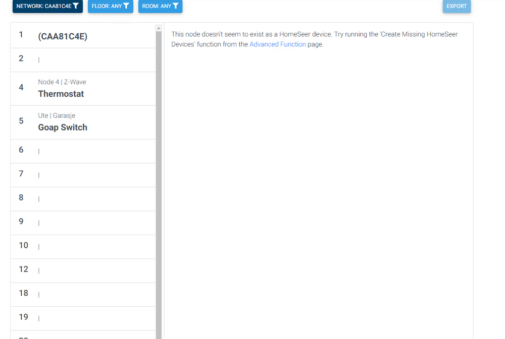 Har ikke lagt merke til dette tidligere, men nå etter en helt clean install av HS4 så merker jeg at z-wave noder forsvinner fra Node Information (og da også på z-wave tabben på devicen). Hvis jeg kjører en rescan så kommer den tilbake, men da med en duplikat root enhet - alle de andre enhetene ligger med den "gamle" root enheten. Noen andre som har vært borti denne, kjedelig å ha masse duplikater liggende? De som har navn nå har jeg kjørt en rescan på..