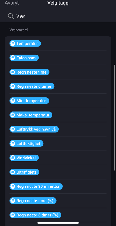 9. Sånn til info, så er det vel noen gamle variabler fra Tibber som het: price_level og measure_price_level som jeg ser har fått status = deprecated (ikke skal brukes mer). Første gangen Tibber endret, fjernet de oppdatering av data fra disse taggene, så for meg som hadde brukt tid på å bruke taggene til å styre varmestyring, gikk alt i dass....måtte endre mange flyter og bytte til nye tagger. Nå prøver jeg heller å bruke % av gjennomsnittlig pris for slik styring. Sent from my iPhone using Tapatalk