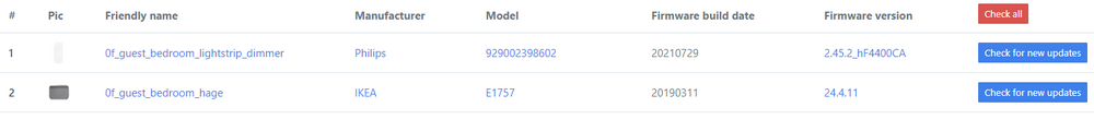 Denne tråden har jo spunnet litt ut, noe som kompliserer starten din med Home Assistant unødig. For å svare på spørsmålene dine 1) Valg av usb-dongle for zwave og Zigbee. Jeg har Conbee2 og Z-sticl gen5. Er disse ok, eller er det noe bedre jeg bør få tak i. Helst noe som lar meg oppdatere firmware på zwave og Zigbee enheter i huset, om det finnes. Disse er OK. Begge lar seg oppdatere firmware, men det avhenger mer av hvilken integrasjon du går for - se neste punkt. 2) Hvordan får jeg Zigbee og Zwave opp å gå i Home Assistant så jeg kan legge til enheter? Jeg anbefaler hhv. Z-wave JS og Zigbee2MQTT. Begge kan oppdatere firmware og sistnevnte kan automatisk se om endel av dine Zigbee-enheter har behov for oppdatering og utføre denne oppdateringen med ett klikk. Eksempler på produsenter som støtter dette er Philips og Ikea. Bilde fra min egen installasjon av Zigbee2MQTT som viser OTA-fanen der oppdateringer utføres. Det kan være litt kinkig å sette opp første gangen, men søk opp en guide for hver og utfør stegene. Zigbee2MQTT krever at du har en mottager for MQTT som må settes opp separat, dette vil en slik guide forklare. 3) Jeg har en del Philips Hue enheter. Brytere, lamper, sensorer osv. Skal alle enheter legges i og organiseres i rom i Hue Bridge, eller skal alt fjernes fra Hue Bridge og legges til direkte i Home Assistant? Disse ville jeg integrert direkte i Zigbee2MQTT. Fordelene er at du slipper en ekstra bridge, hue integrasjonen, samt at Hue enhetene dine vil være med i ditt øvrige Zigbee nettverk og enhetene som er koblet på fast strøm vil fungere som Zigbee-forsterkere også for Zigbee-enheter produsert av andre produsenter. Zigbee2MQTT installasjonsguide: https://github.com/zigbee2mqtt/hassio-zigbee2mqtt#installation Zwave-JS installasjonsguide: https://github.com/home-assistant/addons/blob/master/zwave_js/DOCS.md