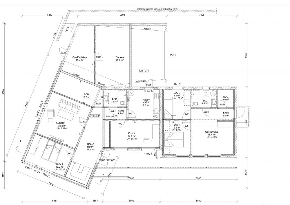 Holder på med totalrenovering og påbygg av enebolig fra 1975, og skal i den forbindelse slenge meg på bølgen med sentralstyrt "alt". Foreløpig vil jeg egentlig ikke kalle det for automasjon, da ingenting er automagisk ennå, og boligen fortsatt er under renovering/oppføring. Det er likevel blitt tatt ett viktig valg, og det er å bruke LogicMachine som hjerne i systemet, kombinert med en server som alle data skal mates inn i på sikt. Jeg er systemutvikler av yrke, så jeg liker at det meste kan hackes på. Lys skal for det meste styres via DALI, og det som ikke går på DALI skal styres via KNX. For interface til brukere vil det mest sannsynlig anskaffes veggmonterte 10" tablets som kjører Android og er matet via PoE. Når det gjelder sensordata er det ekstremt mye å velge imellom, og her har jeg noen idéer. Til enkle sensorer, som temperatur som skal støpes ned, faller sikkert valget på 1-wire, da jeg spesifikt har sett på DS18B20. For alle rom hadde det vært interessant å ha røkvarslere, gjerne kombinert med temperatur, co2, bevegelse, lys, og fuktighet, men så langt har jeg ennå ikke funnet noen jeg synes ser lovende ut (og til en ok pris). EDIT: Skal også ha vannbåren varme i hele huset, og i tillegg elektriske varmekabler på bad (har blitt anbefalt som en slags backup). Dette skal også styres via hele systemet og baseres på sensordata. Skal på sikt få lagt ut litt plantegninger med hva som er tenkt av sensor, lys og kontrollpanel. Det må bare lages først Som en teaser kan jeg legge ut blanke plantegninger.