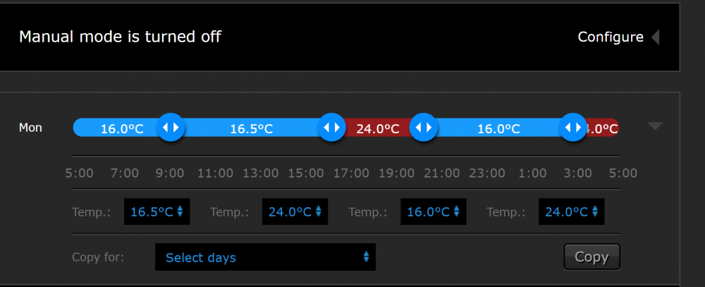 Som man kan se på bildet, så kommer det opp "16 grader om morgenen, selv om jeg har satt heat panelet til å varme fra 0300 som et eksempel på bildet her.