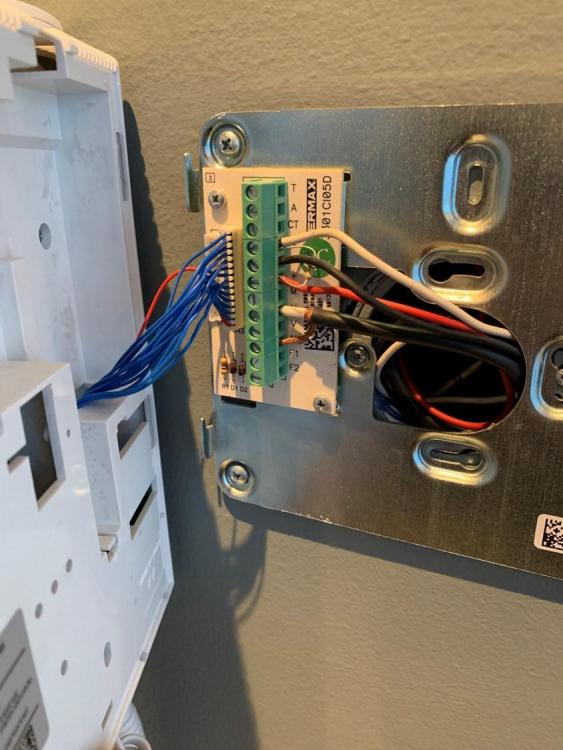 I huset har vi et eldre intercomsystem, Fermax 3301. Jeg har en Fibaro Smart Implant som jeg gjerne skulle brukt for å gjøre intercom'en smart. Noen som vet hvordan man kan koble Smart Implanten til intercom'en? For å kunne styre dette via hjemmeautomasjon (Homey Pro) vil jeg tro jeg trenger å hente ut signalet (en ledning inn i input) når noen ringer på samt sende signal for å åpne/låse opp døra (output). Når jeg skrur av "telefondelen" har jeg en hvit ledning inn i "L", sort inn i "-", rød inn i "+", A/V inn (tråd i midten av koaks-ledning) i "V" og (den "trådete" delen som er mellom isolasjonslagene på koaks-ledning) "M". I tillegg ligger det en motstand mellom "+" og "L", se vedlagte bilder. Er helt ny på dette og tar imot all hjelp jeg kan få!