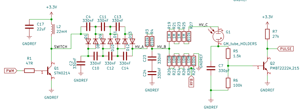 Heisann Første post på forumet her, så tenkte å presentere siste prosjektet mitt. Med tanke på verdenssituasjonen nå så er det vel ikke mye som passer bedre innen hjemmeautomasjon enn en hjemmelaget IOT geigerteller! Aller først må jeg bare si at denne telleren sier på ingen måte noenting om faktisk strålingsdose, og er ikke kalibrert til å si noe om det faktisk er farlig eller ikke der du oppbevarer deg. MEN, sbm-20 rørene er beta/gamma rør som er kjent for å være svært stabile, dette er new old stock russiske (ironisk nok) rør som du får kjøpt av en ukrainer på ebay for ca 200 kr pr rør. I gjennomsnitt ligger den på ca 20 klikk per minutt for SBM-20 rør. Så geigertelleren sier ikke om du har fått i deg en dødlig dose med radioaktivitet, men hvis bakgrunnstrålingeng rundt deg plutselig øker fra 20 klikk per minutt til 500 klikk per minutt, så gir den en ganske god indikasjon på at du kanskje bør finne deg et annet sted å oppholde deg. Dette gjelder forsåvidt for alle geigertellere og ikke min spesifikt. Det finnes konverteringsfaktorer til mikrosivert/time som faktisk gir deg et tall på strålingsdose, for sbm-20 er disse hhv 0.00664 for Cobolt 60 (60Co), 0.00584 for a Cesium 137 (137Cs), og 0.00507 for the Radon (226Ra), men det krever som sagt at du vet hvilken isotop det dreier seg om. Så i bunn og grunn gir denne deg ikke noen annen informasjon enn at det finnes en radioaktiv kilde i nærheten. Selve tellerene er en esp32-wroom basert geigerteller som bruker SBM-20 rør, designet er med 0602 komponenter og større (bortsett fra usb-c og FTDI), så de er ganske lette å håndlodde (anbefaler blyloddetinn akkurat på usb-c porten, den er litt tricky ), men det er nok et design som er best å få produsert opp sammen med noen venner fra pcbway eller noe slikt. Designet både flashes og konfigurereres gjennom USB-c porten, og den er usb2.0 kompatibel. Den er konfigurerbar gjennom seriellporten (med usbc og ftdi) og man kan endre på nesten alt av parametre, og man kan gjøre endringene persistant, så er ganske lett å endre den hvis man vil bruke andre rør feks. (den kan fint bruke alle self quenching geigerrør, men jeg jobber litt med en tillegskrets for å quenche alfa pannekakedetektorer. skal oppdatere designet på github) Jeg lagde en litt snedig buck boost krets med 3x spenningsdobler, så jeg klarer å nå ca 1400volt, men med de standard bom komponentene bør du ikke gå så mye over 1200. PWM signalet kommer fra esp32 chippen, og alle parametre på PWM signalet kan endres via seriell. Har også laget en WIFI config, så den starter som et accesspunkt hvis det ikke er satt en ssid og passord i eeprom. Har også laget en liten enclosure som man kan 3d printe. I wifi configen så kan du legge inn radmon brukerid, og sende data til radmon prosjektet hvis du lager en bruker der. da er du med på et opensource radioaktivitetslogging prosjekt og får en flekk på norgeskartet der bakgrunnsCPMen står JEg har vært litt lat og kun laget et get request api for å hente ut data, men det er mulig å få inn dataen på homeassistant med en custom component: sensor: - platform: rest name: EIK_Geiger resource: http://<IP-Address>/cpm json_attributes: - "data" value_template: "OK" - platform: template sensors: cpm: value_template: "{{ state_attr('sensor.EIK_Geiger', 'data')['cpm'] }}" unit_of_measurement: "cpm" cpm_m: value_template: "{{ state_attr('sensor.EIK_Geiger', 'data')['cpm_M'] }}" unit_of_measurement: "cpm_avg_m" cpm_h: value_template: "{{ state_attr('sensor.EIK_Geiger', 'data')['cpm_H'] }}" unit_of_measurement: "cpm_avg_h" raw_volt: value_template: "{{ state_attr('sensor.EIK_Geiger', 'data')['raw_volt'] }}" unit_of_measurement: "raw_voltage" Men jeg sliter litt med at jeg ikke finner entityen under statistikk graf tilen..... Hvis det er noen smarte hoder ute der som kan hjelpe meg med det så hadde jeg blitt glad! Hele designet er laget i kicad og vscode og har frigitt det under BSD-3 lisens. VS-Code prosjektet ligger under "Code" og skjematikk/pcb ligger under "Cad". Hvis du bare vil ha kretskortet så er det gerberfiler under "Production". Gjør hva du vil med det, men gjerne fork designet og send pull requests hvis du gjør noe morsomt med det 🙂 https://github.com/fredriknk/eikgeiger