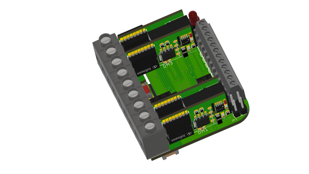 Da var layout ferdig for mitt neste prosjekt som er er en videreutvikling av en allerede oppegående modul (se bilde). Litt tekniske data. Kan utstyres med opp til 4 uavhengige MOSFET dimmermoduler med valg av forkant/bakkant dimming. Kan også brukes på DC. Er mine kalkulasjoner riktig så kan hver modul belastes med 8 Amper. Utganger kan parallellkobles for styring av større laster. To uavhengige tilførsler til rele/dimmerer. Alle laster har individuell effektmåling med temperaturovervåkning samt mulighet for effektbegrensing. I tillegg til registrering ev effekt på laster på dimmer/rele har den også utgang for registrering av andre laster (opp til 25 A). Innebygget Can BUS samt RS485 kommunikasjon (Modbus). Enkel tilkobling til eksterne brytere, sensorer med mer. Akustisk varsling. ESP32 Pico D4 med 4MB ekstra Ram. Wifi og BLE Egen 3,3 Volts regulator for eksterne tilkoplinger. Selv ved kortslutning fungerer modul. Egen 3,3 Volts regulator til CPU og Ram med Backup som er uavhengig av resterende komponenter. Ved nettutfall vil CPU lagre data før den går i dvale. Dimensjoner: 45,1 x 40 x 19,8 mm (se vedlegg). Kabinett Tiny PICO 4 EMPM RS485 CAN Rev2 Drawing v8.pdf