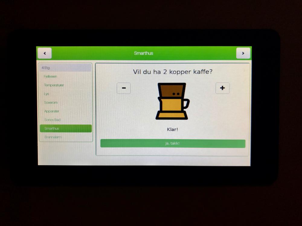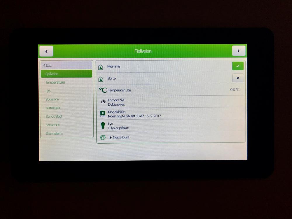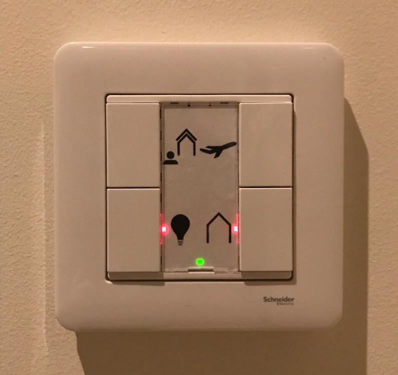 Det er vel på tide at jeg så smått introduserer mitt eget system. Flott med dette forumet, da jeg synes at det aller morsomste med hjemmeautomatisering er fantasien eller mangel på denne. Med gode ideer fra alle slags systemer får man fort idémyldringen i gang! Jeg har en leilighet i en gammel blokk med rundt 100 leiligheter i, fra slutten av 1960-tallet. Da jeg er tømrer med fagbrev (og snart elektriker med fagbrev) måtte følgelig hele leiligheten rives i filler og bygges opp igjen. Siden jeg jobber mye med KNX og systemintegrasjon var det ett heller naturlig valg. Når det er sagt, så er jo leiligheten bygget opp som min lille lekestue og egentlig for å finne ut hvilke systemer som stabilt lar seg integrere mot KNX. For stabilt er viktig for meg, etter å ha levd med blant annet X10 (og Indigo) for mange herrens år siden. Systemer / Protokoller: KNX Philips HUE Nest (kun røykvarslere) Smarter Coffee Sonos I tillegg samhandler jeg med Pushover, YR, Kolumbus, RPi, osv. I veldig nær fremtid har jeg fått installert Magic Mirror, men dette tar jeg i en egen post. Gjenstår egentlig bare å få festen skjermen bak speilet samt få skreddersydd informasjonen. Fysiske produkter: Schneider Strømforsyning KNX 320mA Schneider SpaceLYnk Logic Controller Schneider KNX Dimmere, 2x 4x250W Schneider KNX Relé, 8-kanals Schneider Brytere Schneider Termostater Schneider PIRer IntesisBOX KNX-IR Varmepumpekontroller Zennio Quad+ Binærinngang RPi Touchskjerm (innfelt i vegg ved inngang) Philips HUE Ledstrip Nest Protect Denne listen vil nok vokse de neste månedene da jeg mangler litt grunnleggende sensorer, som f.eks vannlekkasjesensorer. Her er jeg litt usikker på hvilken protokoll jeg bør gå for, derav mitt medlemskap på dette forumet... Automatisering: Med KNX i bunn har jeg et veldig stabilt system som fungerer uansett hva som skulle skje med nettverk eller om en kontroller skulle dø. Man kan si at jeg har programmert inn basisfunksjoner som lar meg kontrollere lys og varme i rom om kun KNX-busen skulle være oppe å gå. Når det er sagt så er jo ikke KNX i seg selv veldig smart, så man trenger en modul på toppen for å ta seg av den biten. Her har jeg gått for Schneider Electric´s SpaceLYnk, som egentlig er en lisensiert boks fra Embedded Systems, Logic Machine. Dette er en proprietær webserver som støtter KNX, Bacnet, ModBUS, RS232/RS485 og det du kan integrere selv av webløsninger. Den baserer seg i all hovedsak på gruppeadressestrukturen man kjenner fra KNX og det er derfor ett verktøy man "lett" kan begynne med og forstå seg på. Den støtter blokkprogrammering, men jeg skripter selv. Skriptspråket er en lett modifisert utgave av LUA. Da jeg jobber med systemintegrering selv bruker vi selvsagt SpaceLYnk (eller HomeLYnk) i våre prosjekter. Jeg og en kompis har derfor laget ett "smart lag" på toppen av alle KNX installasjoner som baserer seg på innstillinger av bruker. På denne måten slipper man å ringe til elektriker for å endre de enkleste ting, mens man har smarte funksjoner som dynamisk lysstyrke basert på tid på døgnet feks. Jeg har derfor basert opplevelsen av leiligheten på følgende husstatuser: Hjemme morgen Hjemme dagtid Hjemme kveld Natt Borte Bortreist Brann Vaskemodus Alle disse statusene gir meg forskjellige lysnivåer basert på innstillinger jeg endrer på en webside. I tillegg styrer de varme. Det eneste jeg må fortelle leiligheten ved hjelp av brytere er om det er natt eller om jeg er borte. Resten klarer leiligheten å finne ut av selv. Jeg har ikke fått geofencing til å oppføre seg adekvat nok, så jeg ser for meg bluetooth beacon-teknologi på sikt for å ordne dette. Selv om det ikke er allverdens arbeid å trykke inn en bryter før jeg går ut av leiligheten For tiden forsker jeg på human centric lighting, så kommer nok til å legge til litt om dette etterhvert. Det er derfor jeg har Philips HUE i leiligheten bl.a. Sånn for ordens skyld så styrer jeg Philips HUE og Sonos på veggbryterne. Akkurat det synes jeg er fantastisk allsidig med KNX og SpaceLYnk (bildet vedlagt er eksempel på dette). Alle etiketter til brytere lager jeg selv. Romoversikt Gang: Minst mulig trykkerier her, men har en bryter ved utgangsdør som tar seg av statuser samt en RPi som tar seg av visualisering innfelt i vegg. Designet og printet festeklips til denne selv, slik at den er helt flush med vegg. RPi: Denne visningen aktiveres når huset (automatisk) settes i hjemmemodus på ettermiddagen ved registrert bevegelse i gangen: Den er _veldig_ flush med veggen: Bryter ved dør: Soverom Dette rommet har to dimbare ELKO veggspotter og HUE som indirekte rombelysning. Skal ha ett større speil på veggen motsatt av dette bildet og tenker også her å felle inn HUE ledstrip i toppen av ramma for å øke lysnivået i rommet. Siden rommet _nesten_ utelukkende en mørkeblått og matt sort fungerer det hvite taket som en slags diger lampe da det blir belyst direkte av ledstripene.