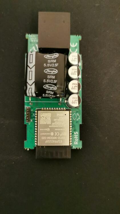 Har en Tibber Pulse som vi ikke bruker lenger siden vi ikke er kunder hos Tibber. Bestemte meg for å forsøke å omprogrammere den slik at jeg kan bruke den som en generell amsreader. Åpnet opp Pulse boksen, og til min store overraskelse var et allerede 6 pinner klare for å flashe den. Koblet den opp via en ESP32 programmerer som jeg benytter til andre ESP32 prosjekter. Flashet den med denne: https://github.com/UtilitechAS/amsreader-firmware/wiki/flashing Så langt så bra. Når jeg kobler den nyflashede Pulse enheten opp med USB strøm og RJ45 plug fra sikringsskapet får jeg opp strømforbruk fra sikringsskapet i nettleseren, men dog med noen små endringer. F.eks så booter ikke ESP32en opp med mindre det er en 10uF 10V kondensator mellom EN/reset og Ground. Så det funker greit da, men her stopper det litt opp. Når jeg kobler fra USB strømmen så vil den ikke lenger boote på strøm fra RJ45 pluggen. Jeg vet at den kan det, for Tibber Pulse enheten funket uten ekstra strøm når vi var kunde hos de og den sto i sikringsskapet i ca et år uten stans. Når jeg sjekker volten mellom VCC og Ground så går den opp til 3.3v men så detter den ned igjen til 0.etellerannet også sakte opp til 3.3 igjen, før den looper på nytt. Tips? Her er Tibber Pulse kretskortet på undersiden og oversiden. -