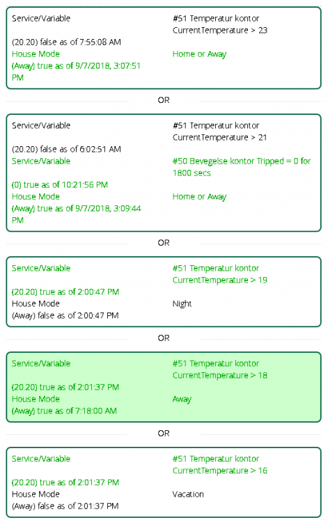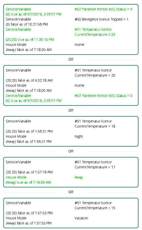 Jeg har en panelovn på kontoret som styres av diverse condtions. Først brukte jeg denne i PLEG, men prøvde meg i Reactor. Fikk testa alt i går, og jammen funka den knall!